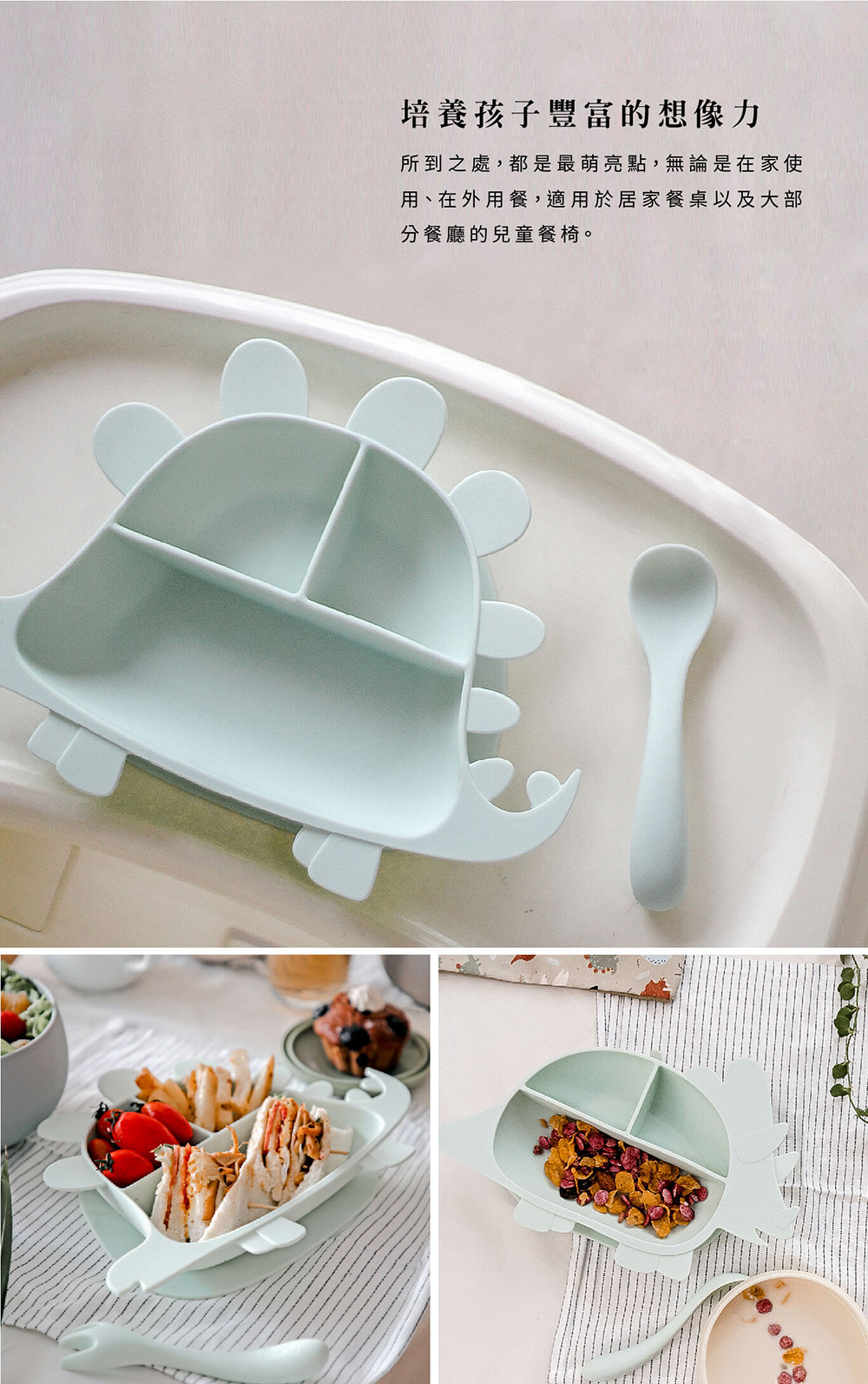 .育兒恐龍餐盤叉匙組(三角龍、劍龍)