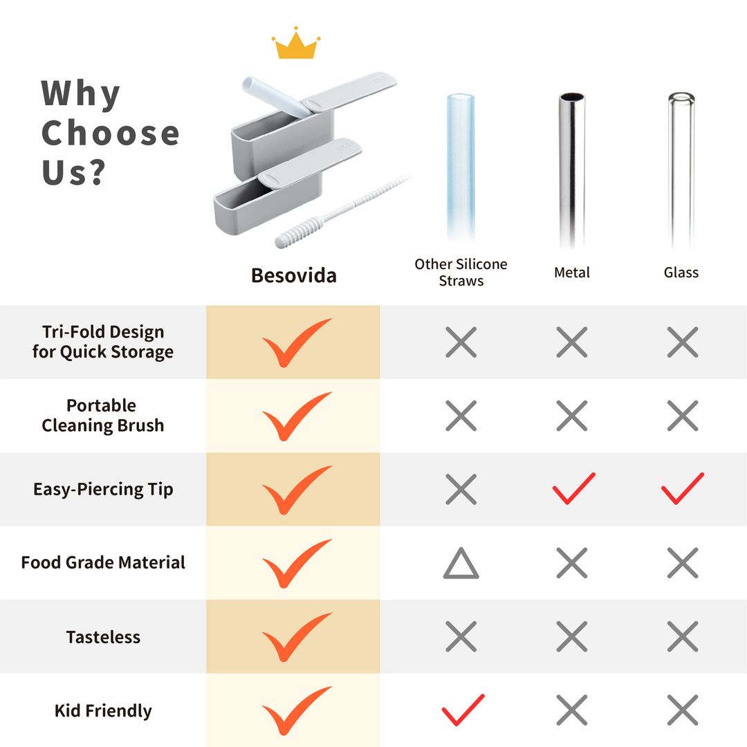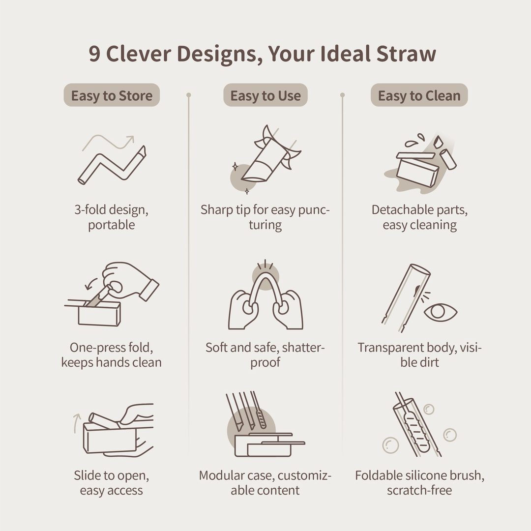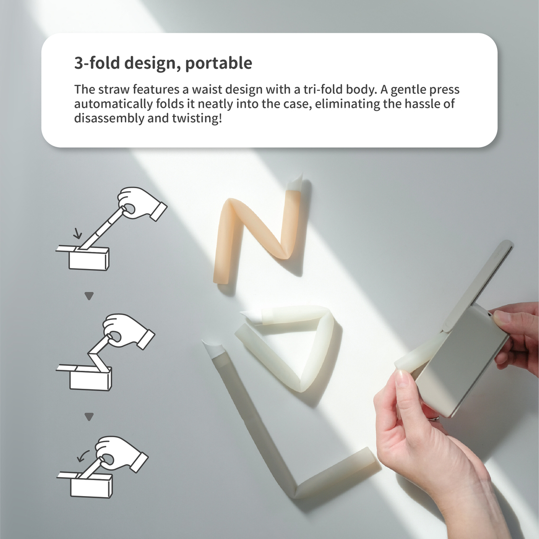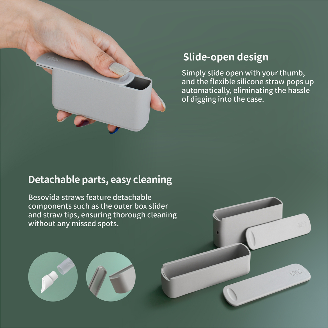 The main feature of Besovida straws is the combination of the tri-fold design and the slide-open case, achieving one-press fold storage functionality that keeps hands clean.