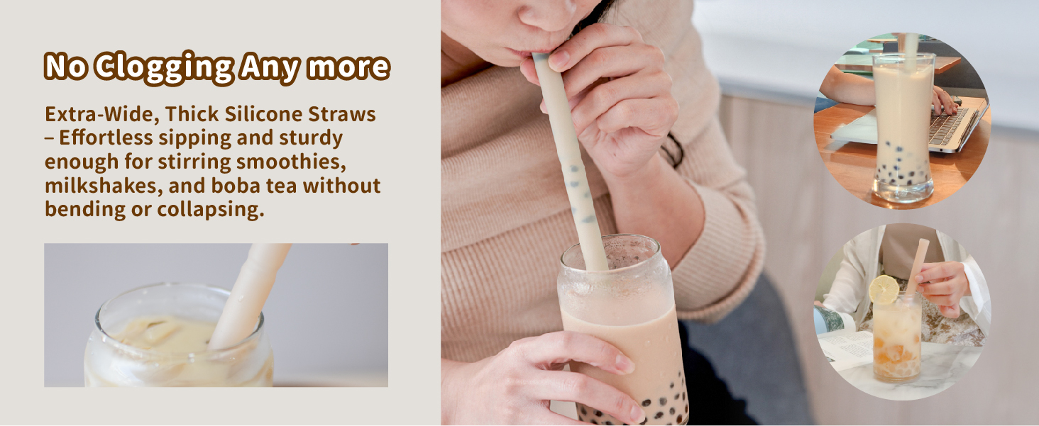 • The thick silicone design makes it strong enough for stirring viscous drinks like smoothies or bubble tea, without bending or collapsing.