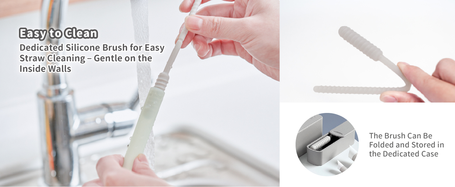 • The 3D silicone brush cleans residue without scratching or damaging the straw.