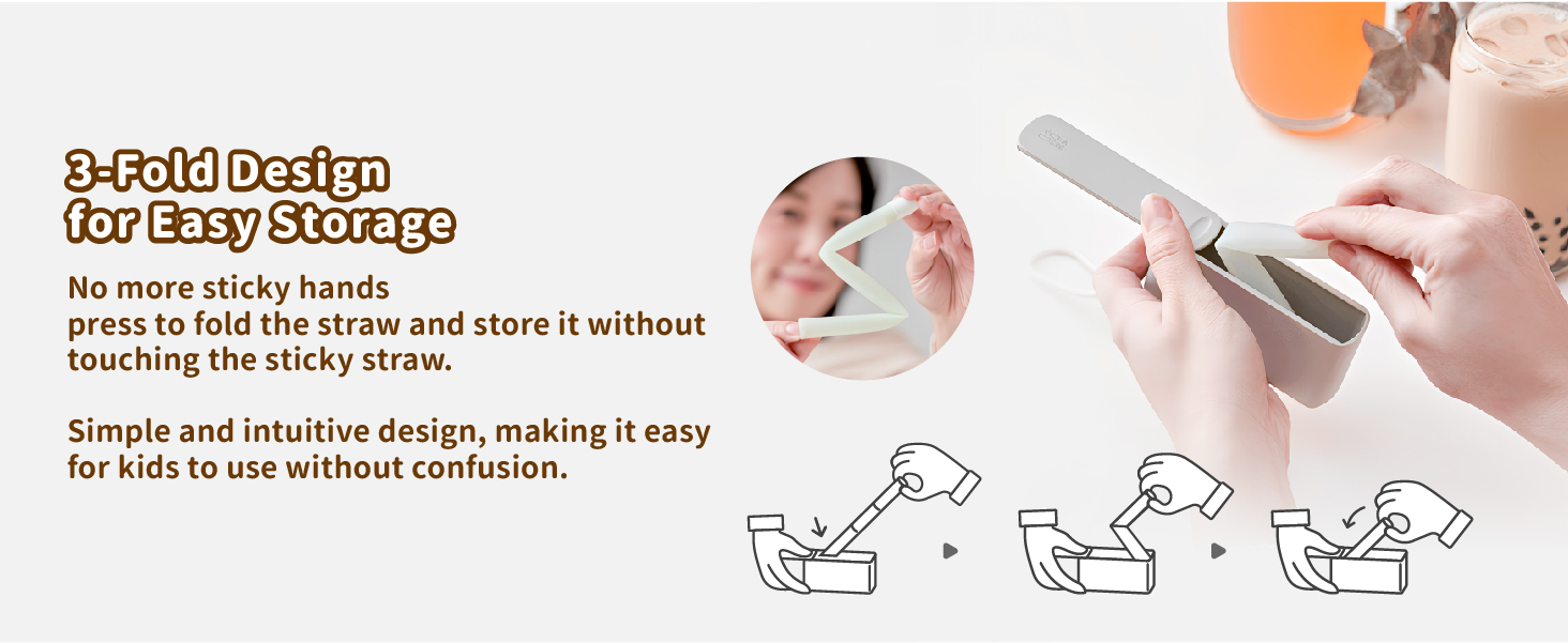 • No more sticky hands—press to fold the straw and store it without touching the sticky straw.
