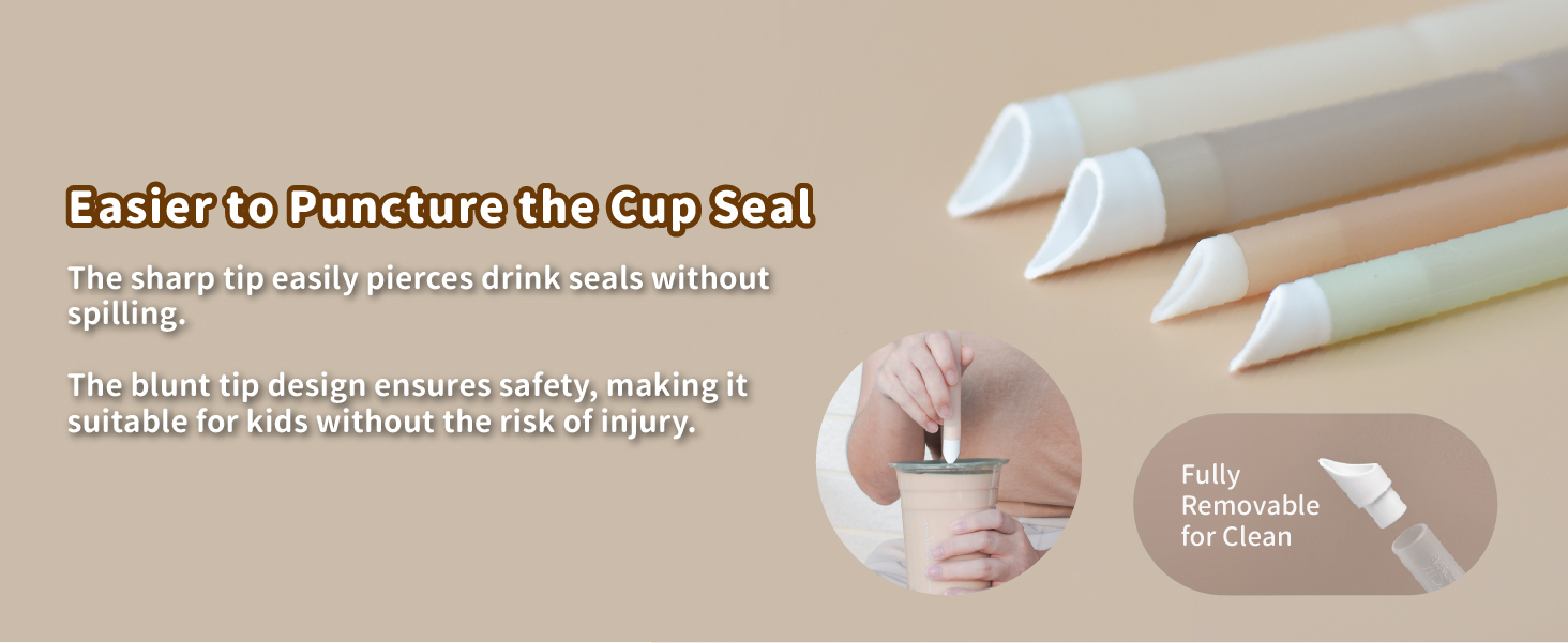 • Food-Grade PP (Polypropylene): Tip of the straw piercing end.