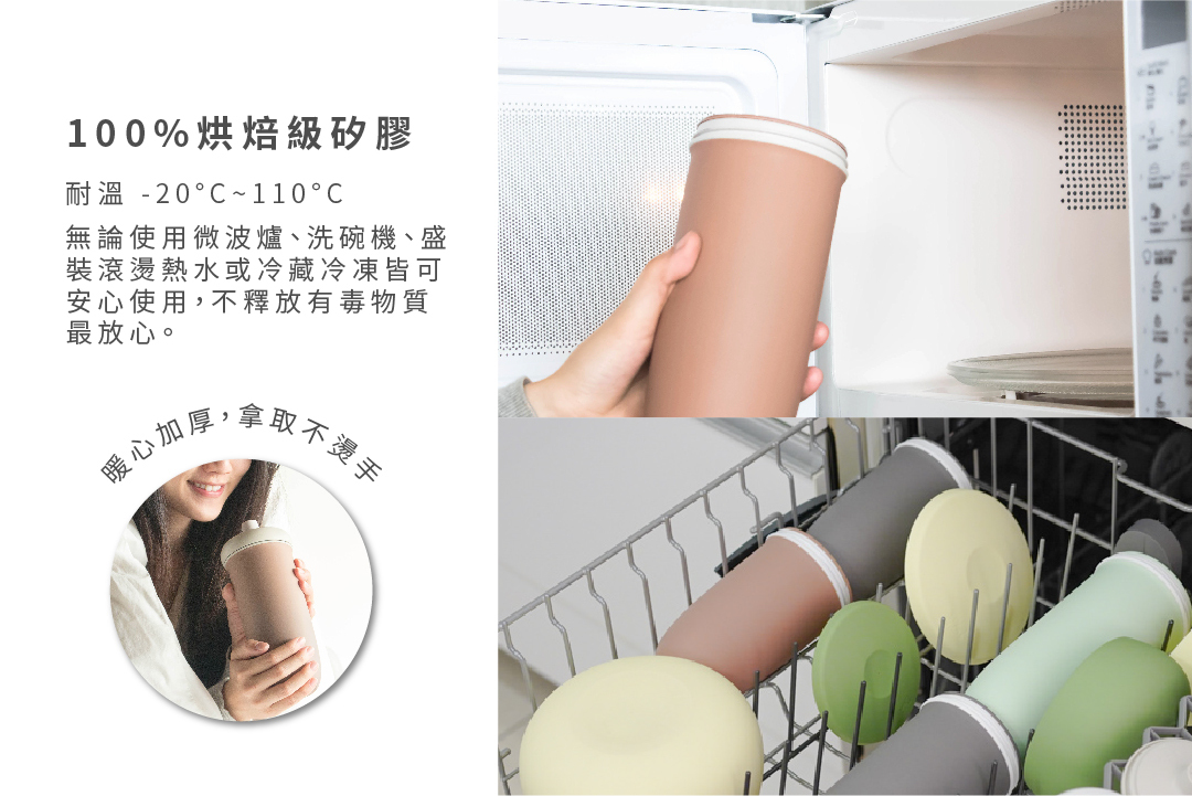 甘甘杯身耐溫達200°C;杯口的螺紋材質為可微波PP,耐溫達110°C,可以放進微波爐與洗碗機沒問題~