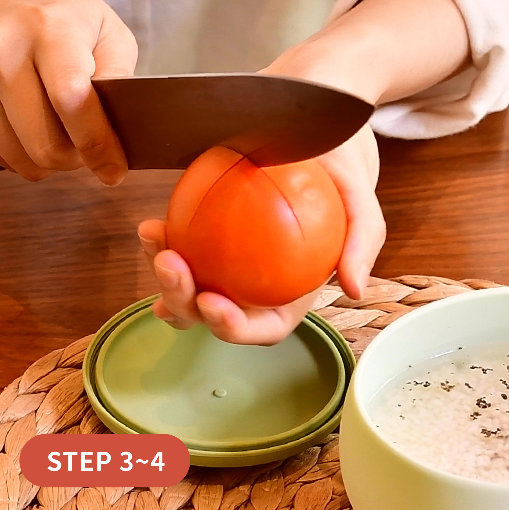 *小撇步:屁股切十字讓番茄更容易蒸熟攪拌