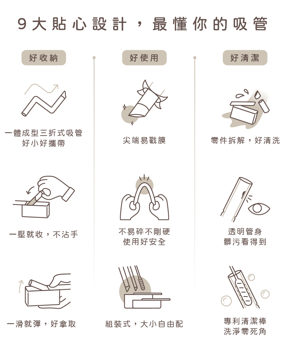 健康、安全又容易的使用程序,讓摺摺吸管優雅我的生活情境。