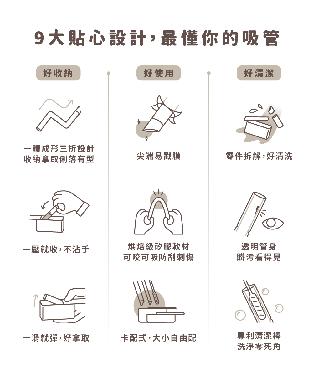 健康、安全又容易的使用程序,讓摺摺吸管優雅我的生活情境。
