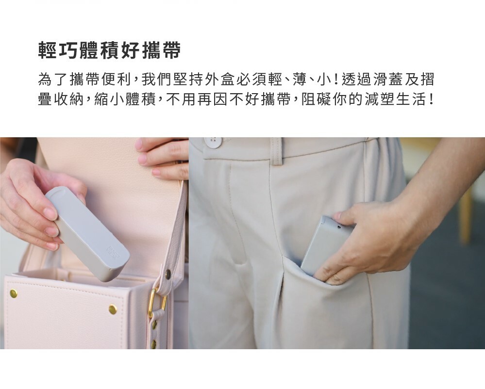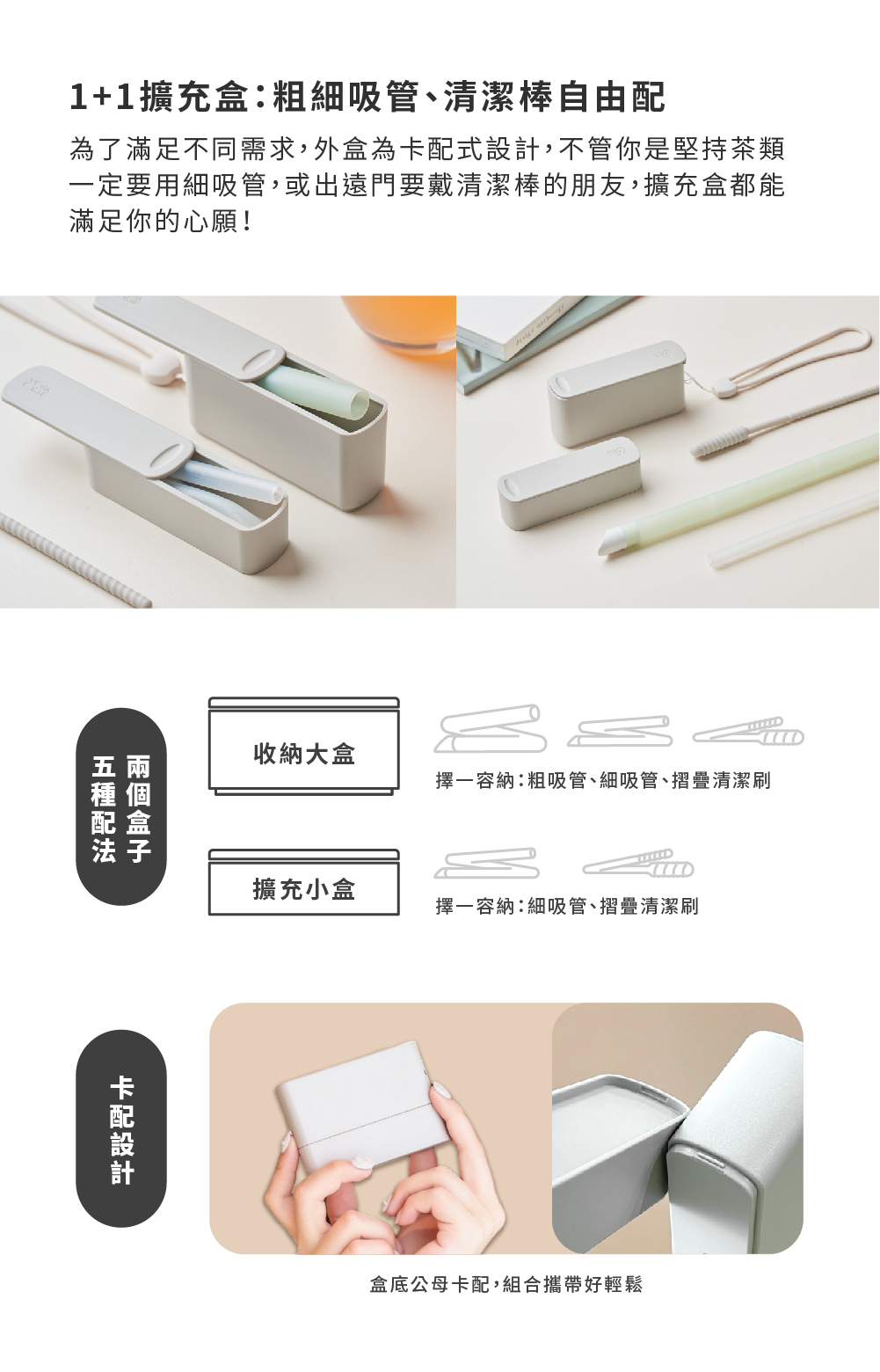 自從摺摺吸管問世,在嘗試一輪平日的手搖飲,珍奶,仙草凍飲等等,含在嘴裡的觸感竟是如此溫潤而收納盒取出的那刻,卻是如此硬挺,能屈能伸,完全顛覆了對摺疊的定義包包隨時戴上甘甘杯與摺摺吸管,已是我現在出門的標準配備。