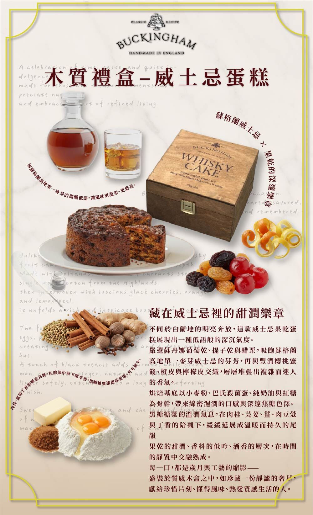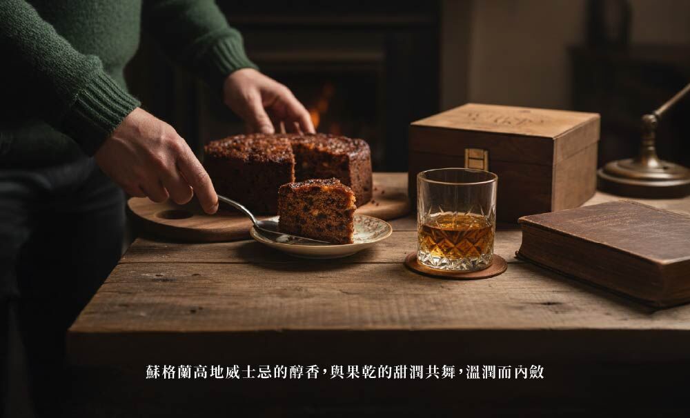 當蘇格蘭威士忌慢慢浸潤葡萄乾與果乾,時間與酒香在木盒中醞釀,