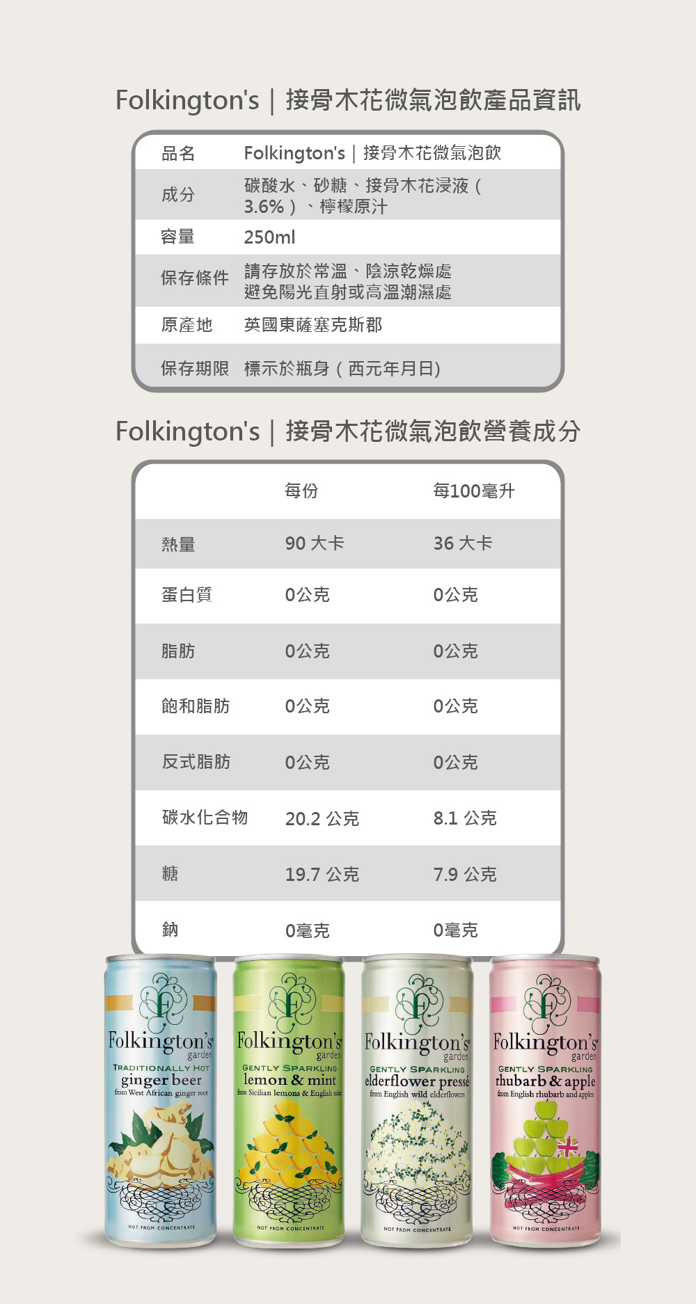 【Folkington’s 四款 250ml 英式微氣泡】