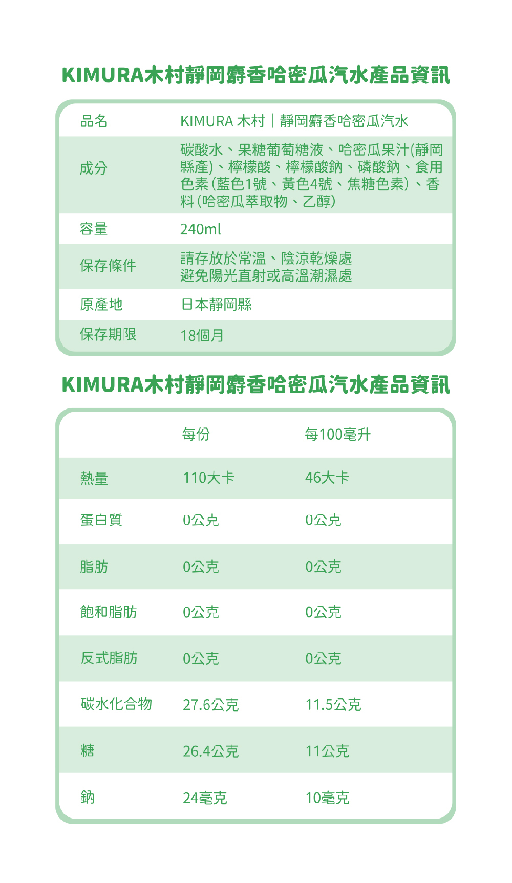 【KIMURA 靜岡麝香哈密瓜汽水商品資訊】