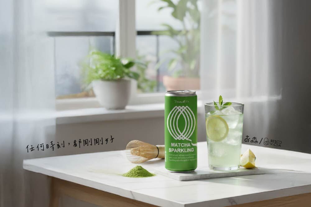 它清爽卻有厚度,入口讓人聯想到熟悉的 「綠茶可樂」,卻又多了抹茶的深韻與檸檬的清新