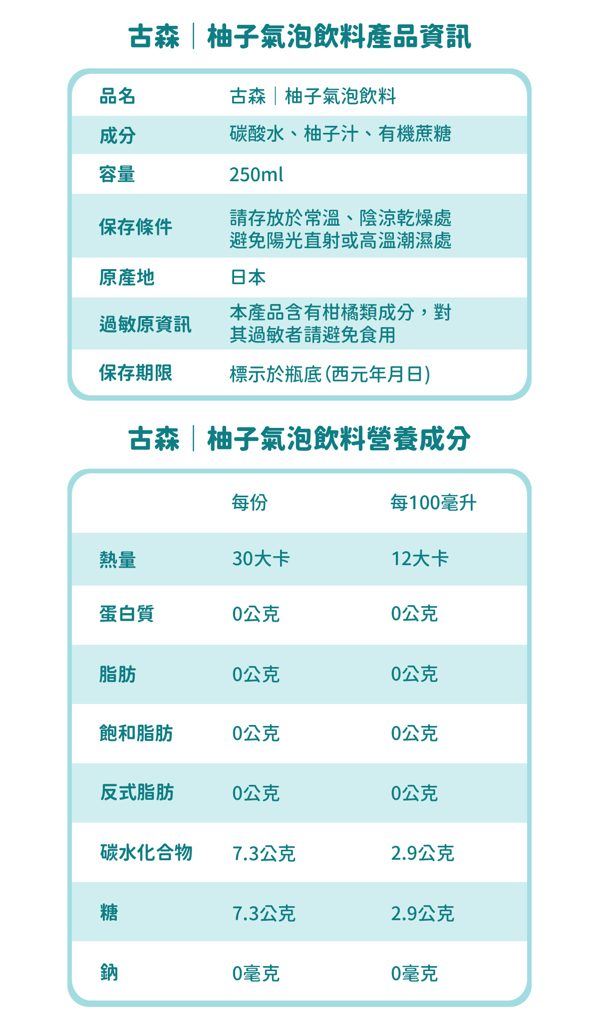 【古森柚子氣泡飲商品資訊】
