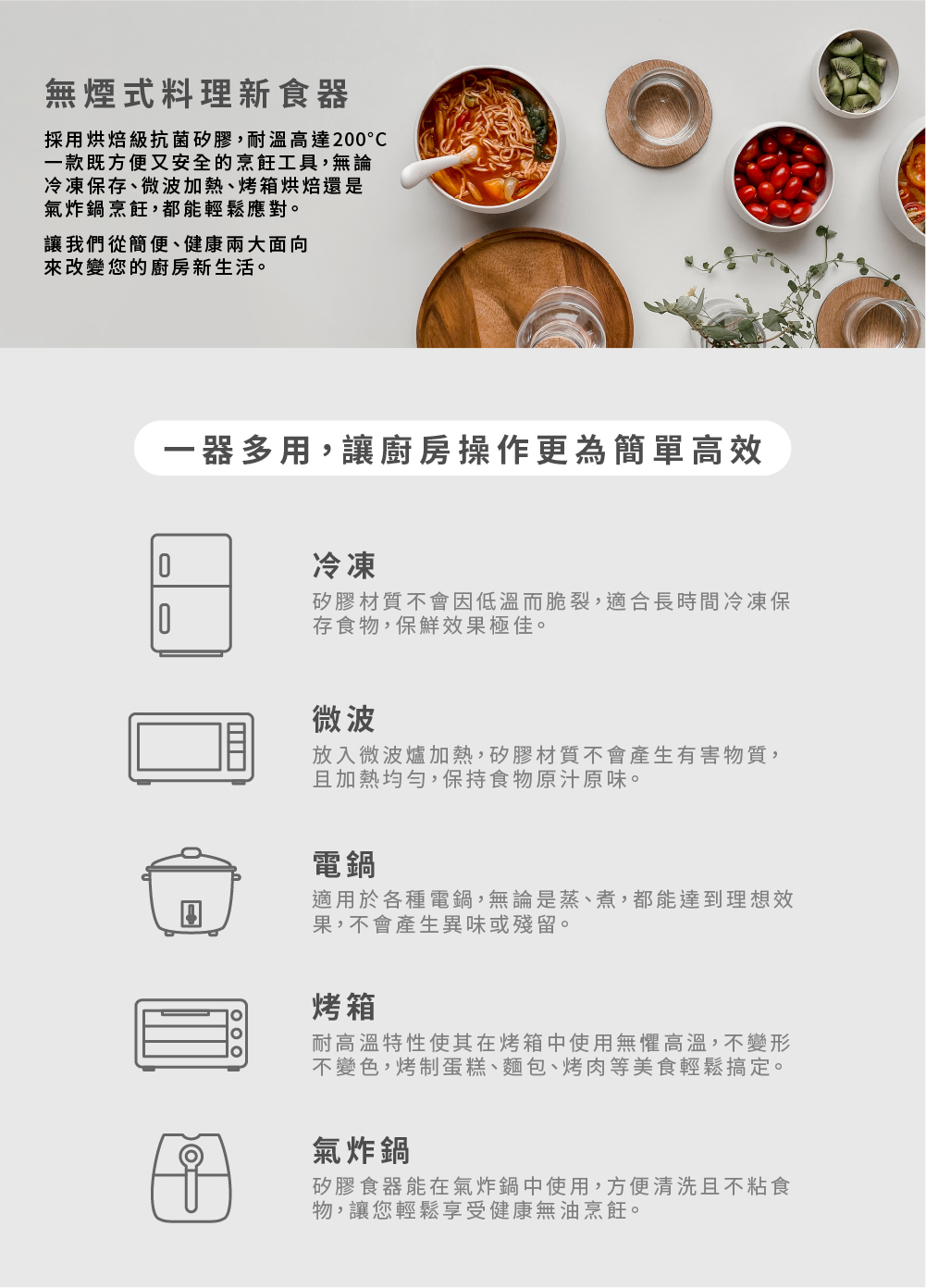 •微波、烤箱、電鍋、冷凍、洗碗機都OK