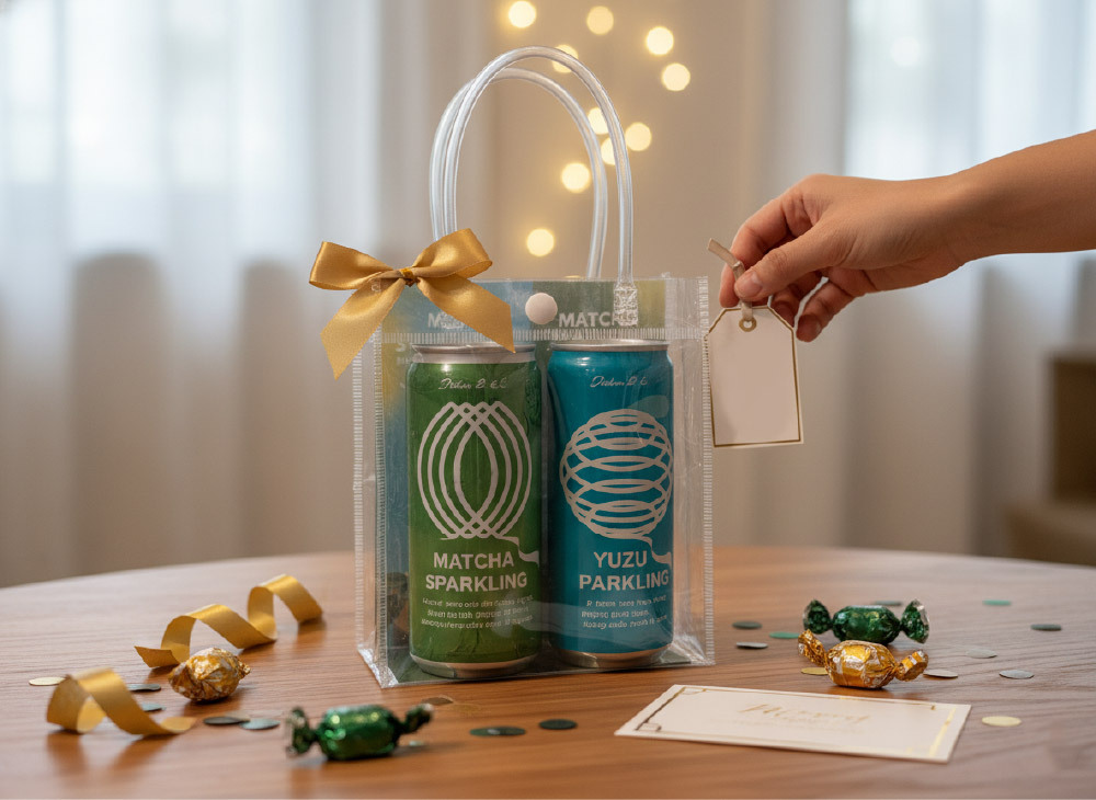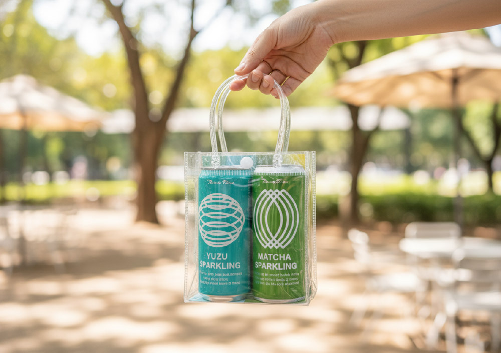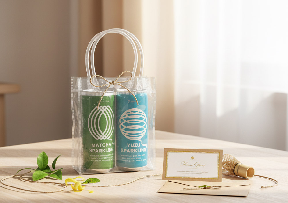 這款特製的全透明防水提袋,打破了傳統禮盒的厚重感,將內容物的清爽色彩直接轉化為視覺焦點。
