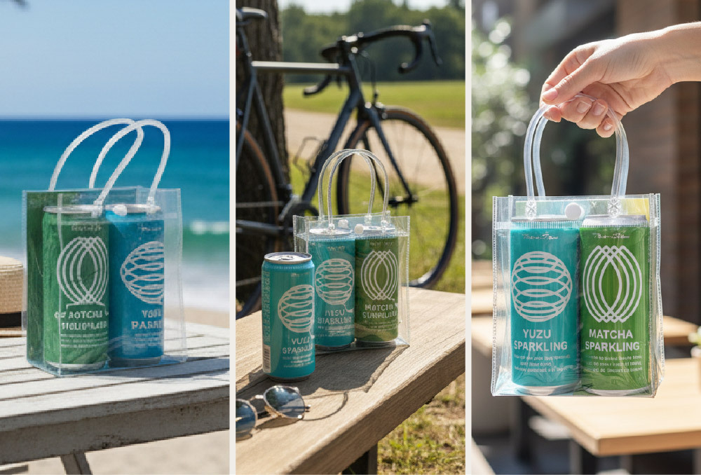 透明袋裝設計,讓飲品成為視覺的一部分。